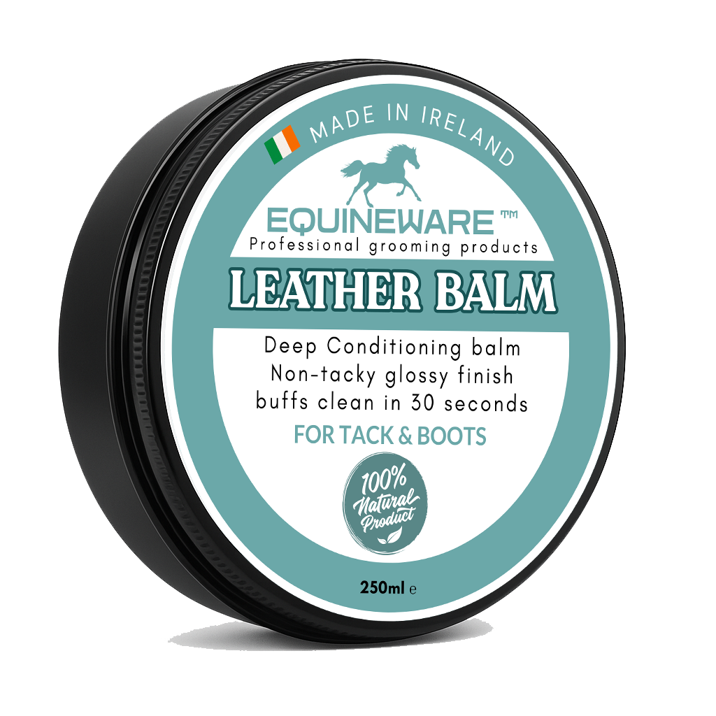 Keep your leather supple, protected, and show-ready. Equineware™ Leather Balm is a 100% natural-origin, petroleum- & silicone-free conditioner that delivers a non-tacky satin finish and buffs clean in 30 seconds. Hand-poured in Ireland for riders who want fast, reliable results.